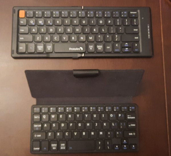 Update: Well, the keyboard had a fatal flaw for me. To use quotes or apostrophes, you had to use a different set of keys (FN + < >). While I was able to adapt to this, it was enough of an annoyance that I decided to try a folding keyboard. Folded up, it’s slightly shorter, slightly wider, just as thick, and almost the same weight.