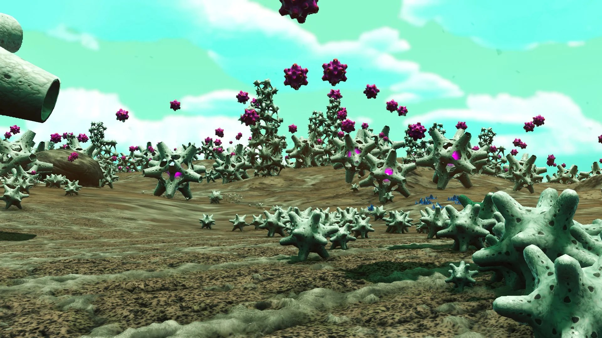 In NMS, you visit countless crazy worlds with different biomes ranging from realistic to reality-warping, each with unique flora and fauna, which you can make into a pet if you want.